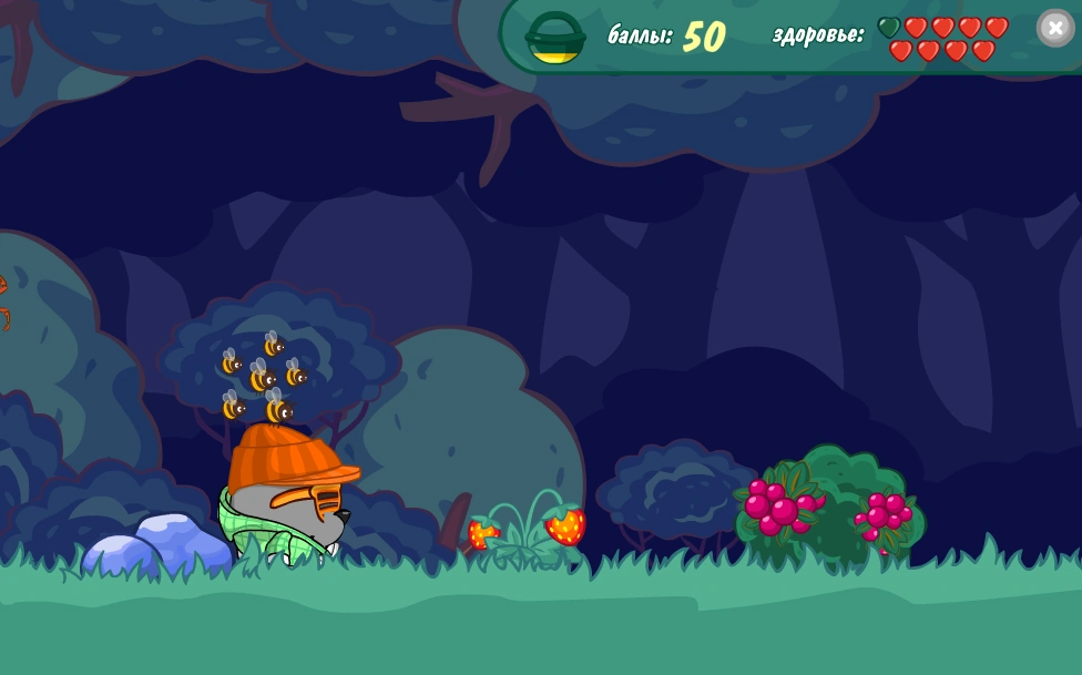 Всего у Смешарика 9 жизней (сердечек). Каждый раз, когда Смешарик натыкается на препятствие или берёт в свою корзину несъедобную ягоду или гриб, у игрока отнимается одна жизнь.